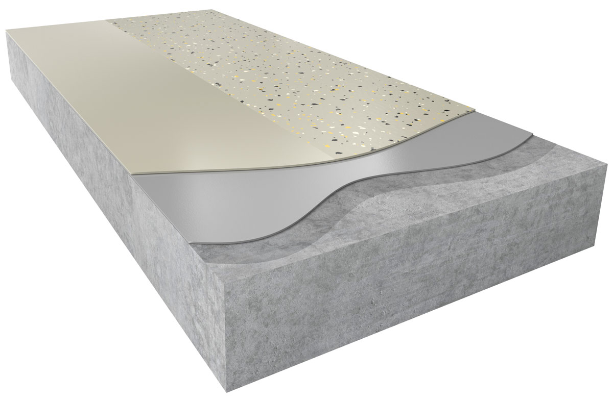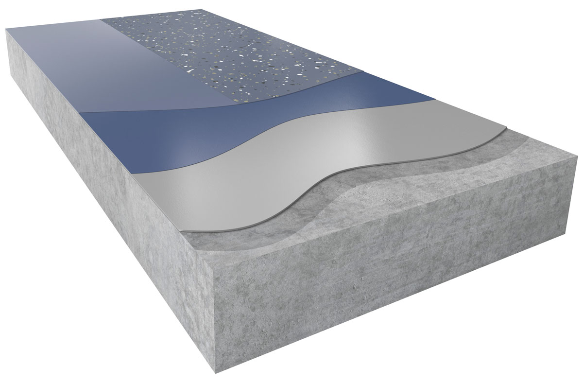 Der Beschichtungsaufbau mit 2K-Sealcon Top 832 ermöglicht eine schnelle und praxisgerechte Flächenabdichtung für Balkone, Loggien und Laubengänge in geringer Schichtstärke von 2 mm. Besonders rationell: Die Beschichtung bietet gleichzeitig Abdichtung und Nutzschicht. Optional kann die Oberfläche durch Dekochips 843 individuell gestaltet werden.