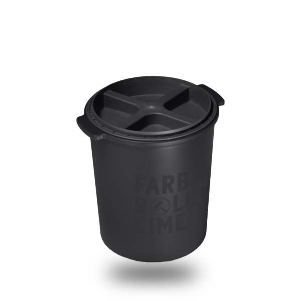 Robuster Farbrolleneimer aus 100 % recyceltem Kunststoff – ideal für saubere und effiziente Arbeit. Die integrierte Rollenaufnahme nimmt bis zu sechs Farbrollen auf und
